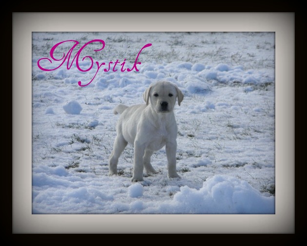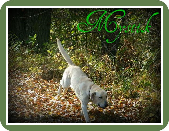 Mystik is the baby around here. She came to use from a breeder in Minnesota. She loves to play fetch and swim. Water is one of her favorite things, she will stand in front of a hose or steals the sprinkler just to play in the water. She has a very packed pedigree with 45 Champions . Her Great-Grandsire is INT CH Winquest the White Wizard van Dalen (Gandalf) and her Grandsire is UKC APRI INT CH Van Dalen Dreamer of Dixieland "Dreamer"